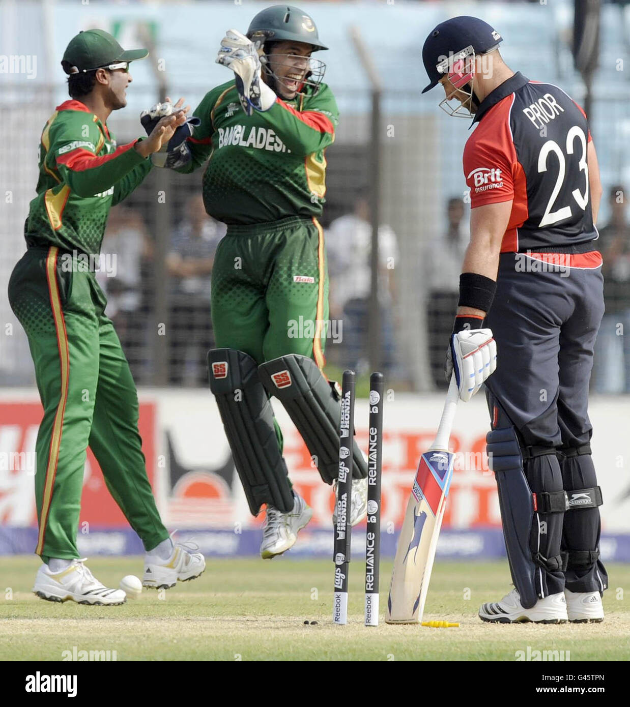 England S Matt Prior Is Stumped By Bangladesh S Mushfiqur Rahim During The Icc Cricket World Cup Match At The Zahur Ahmed Chowdhury Stadiumm Chittagong In Bangladesh Stock Photo Alamy