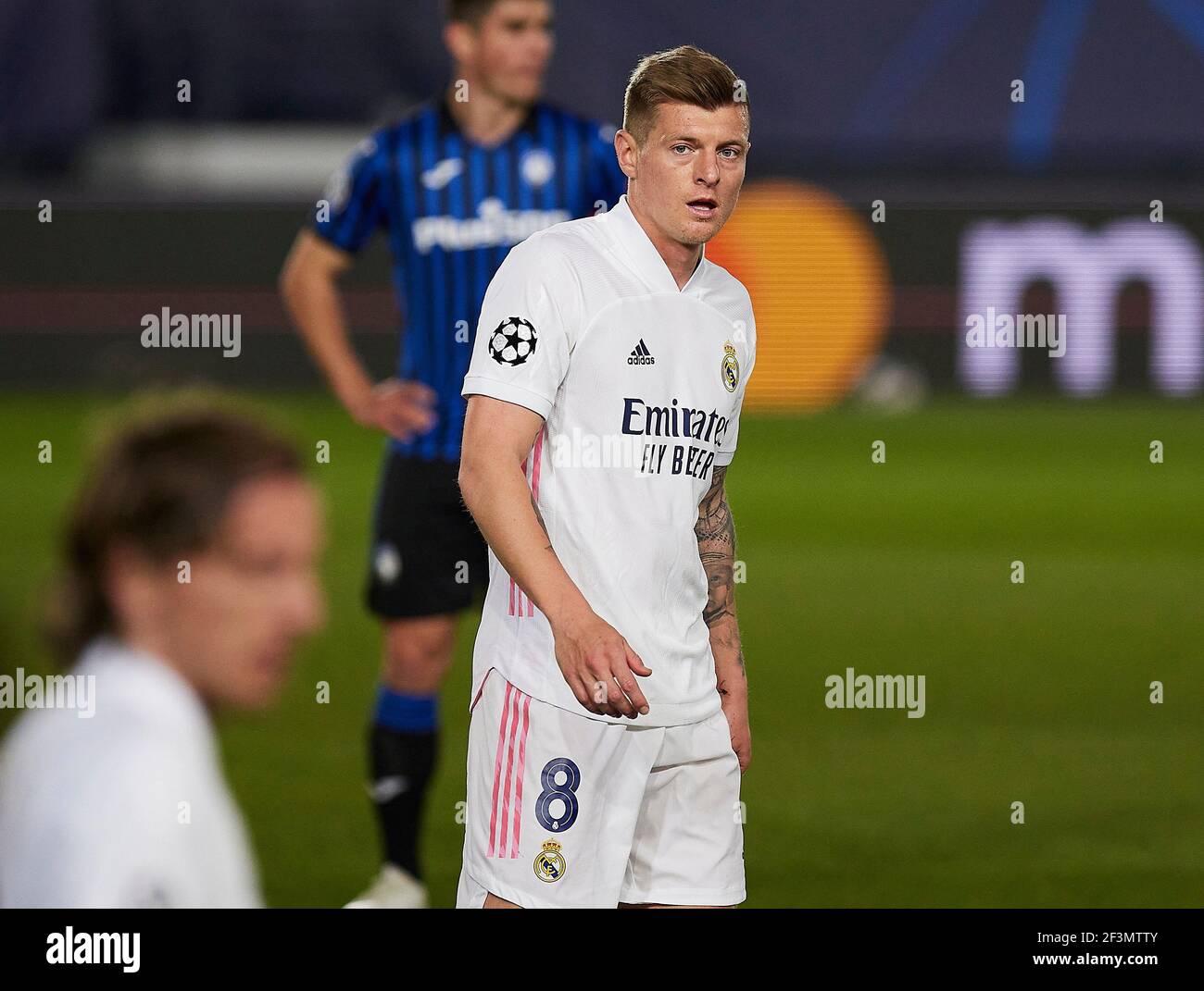 Madrid Spain 16th Mar 2021 Toni Kroos Real Madrid Cf During The Uefa Champions League Round Of 16 Second Leg Match Between Real Madrid And Atalanta Bergamo At Valdebebas Sport City In